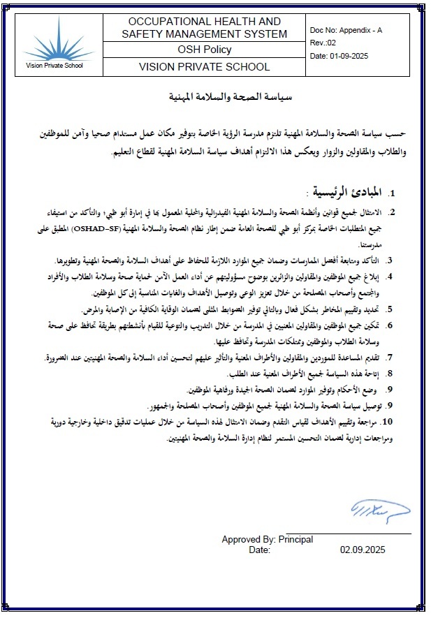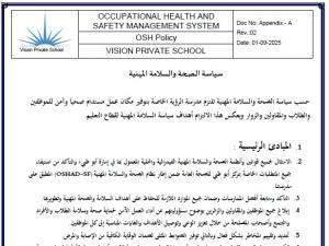 سياسة الصحة والسلامة المهنية للعام الدراسي 2025-2026